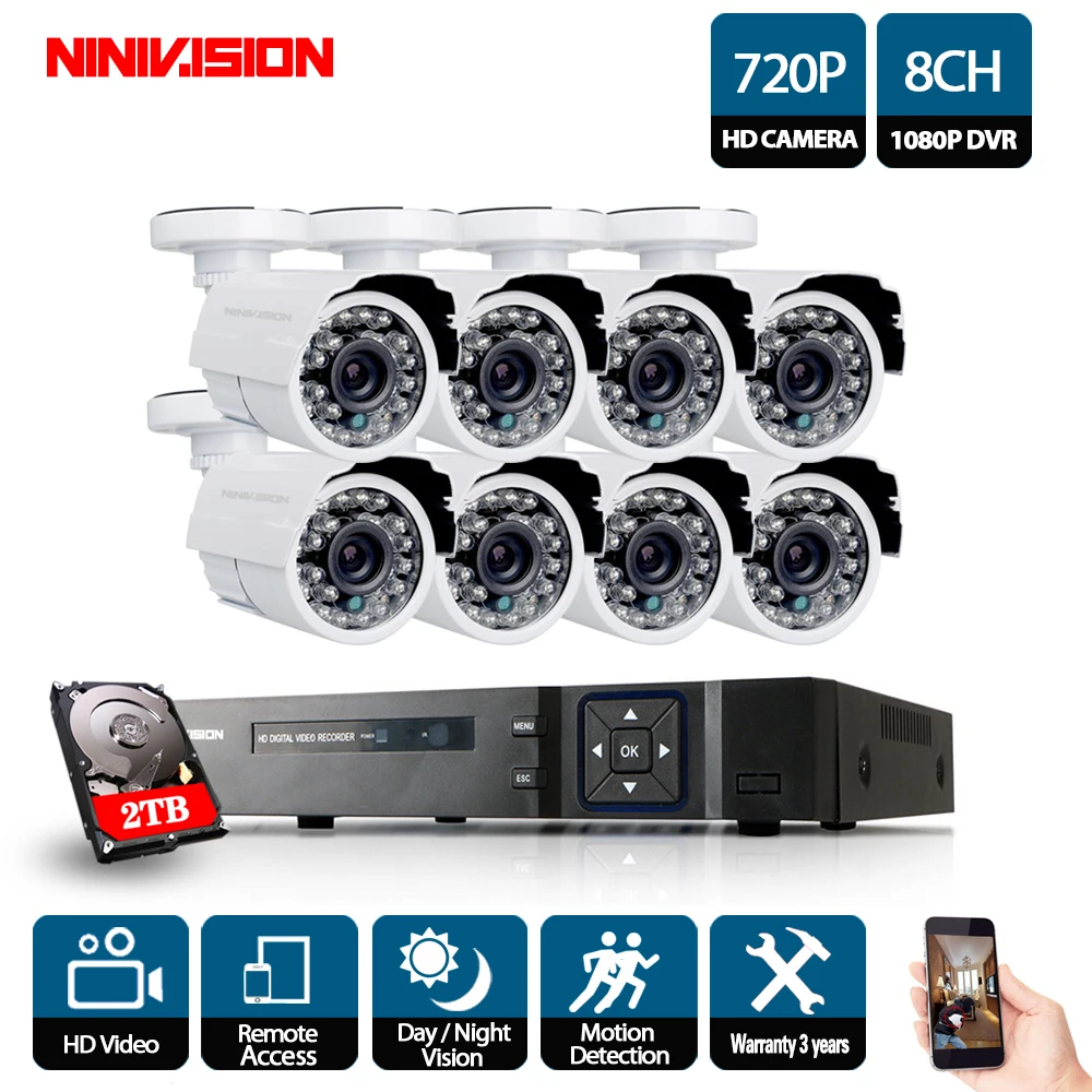 8CH 1080P HDMI DVR 2000TVL 720P HD Outdoor Surveillance Security Camera System 8 Channel CCTV DVR K