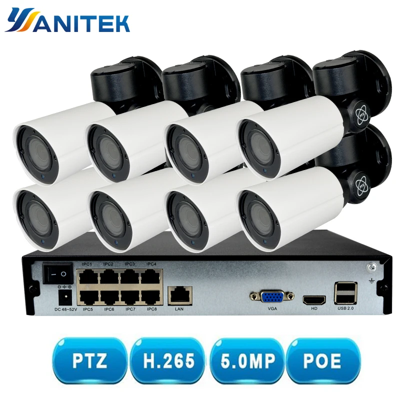 8CH H.265 PTZ 5.0MP POE 4X Zoom NVR Kit CCTV System IP Camera Outdoor Waterproof Video Security Sur