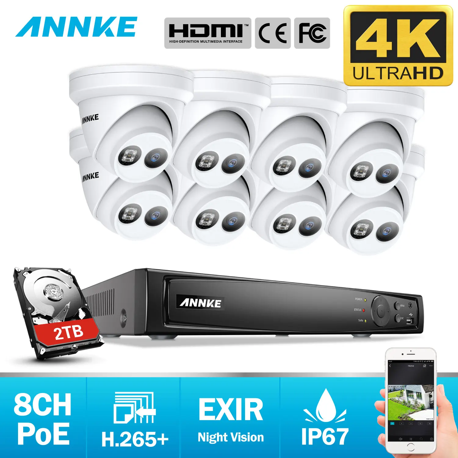 HIGH QUALITY ANNKE 8CH 4K Ultra HD POE Network Video Security System 8MP H.265+ NVR With 8pcs 8MP Weatherproof I