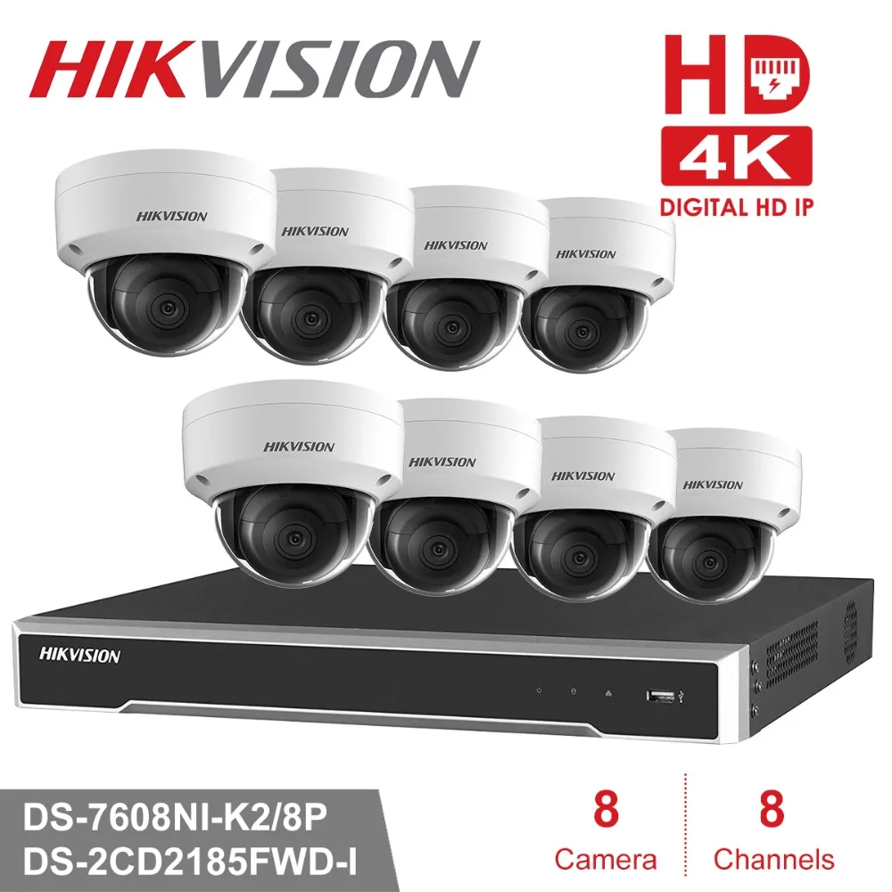 ORIGINAL Hikvision CCTV System 8MP Camera System 8 Channel PoE NVR & 4 PoE IP Cameras Dome Outdoor HD Video