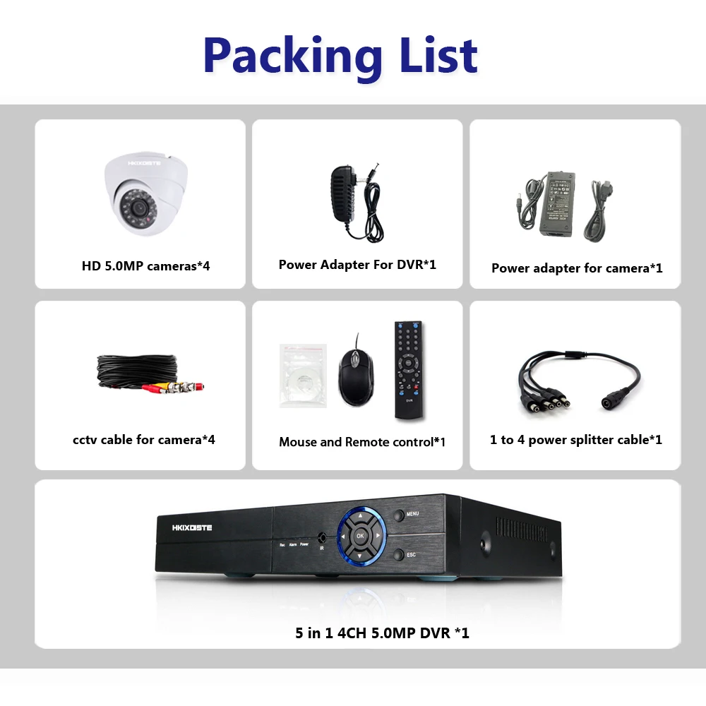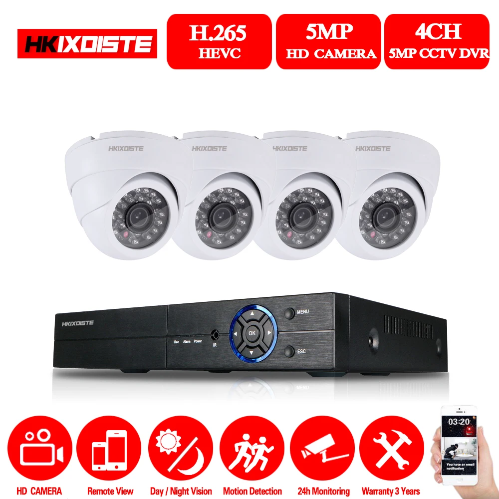 HIGH QUALITY HKIXDISTE 4CH 5MP HD Home Security Cameras System 4Pcs 5.0MP 2560*1920p Indoor Outdoor Dome CCTV Ca