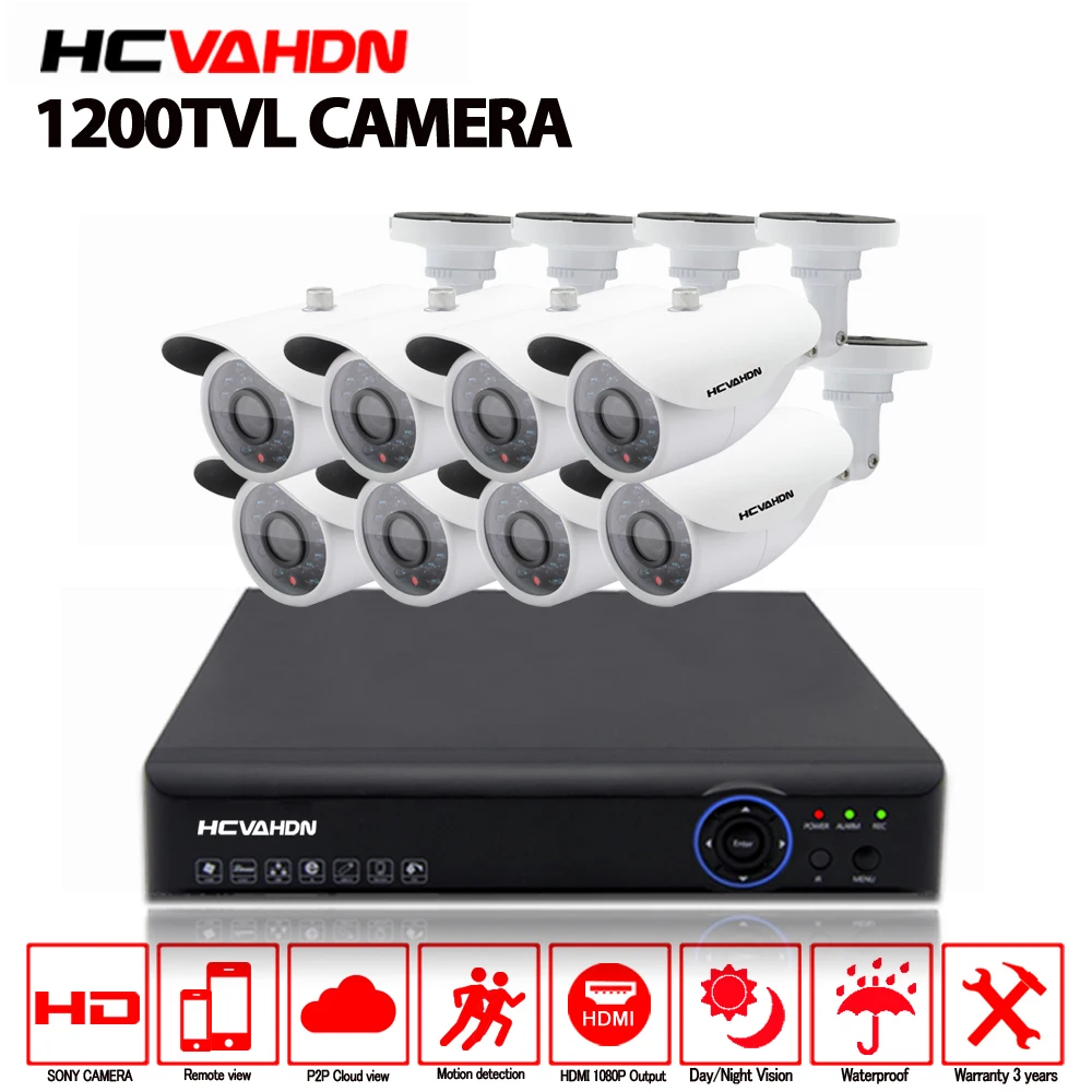 8CH 1080P HDMI DVR 1200TVL HD Outdoor Surveillance Security Camera System 8 Channel CCTV DVR Kit AH