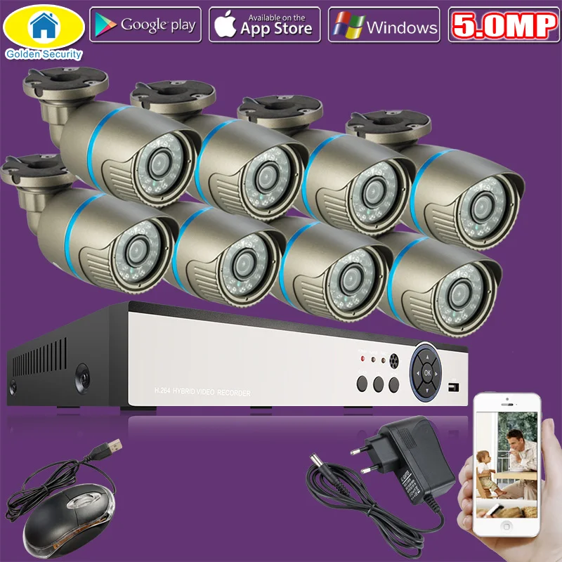 Golden Security HD 8CH CCTV System 8 Channel 1920P DVR 8PCS 5.0MP Bullet Outdoor Home Video Camera