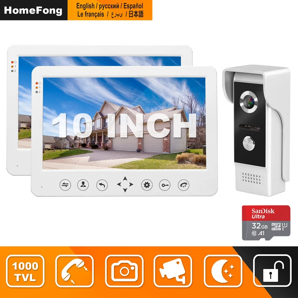 Best Quality HomeFong 10inch Video Intercom Doorbell 2 Displays with 1 Doorbell Support Motion Detect Record and