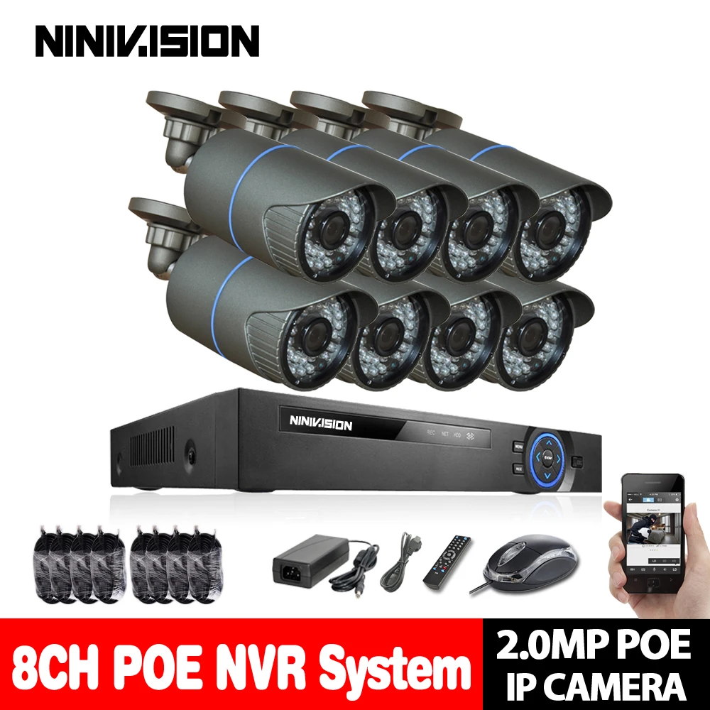 BEST QUALITY NINIVISION 8CH 1080P POE NVR CCTV System Kit with 8PCS 1080P 2MP IR 35M Bullet POE IP Camera Outdoo