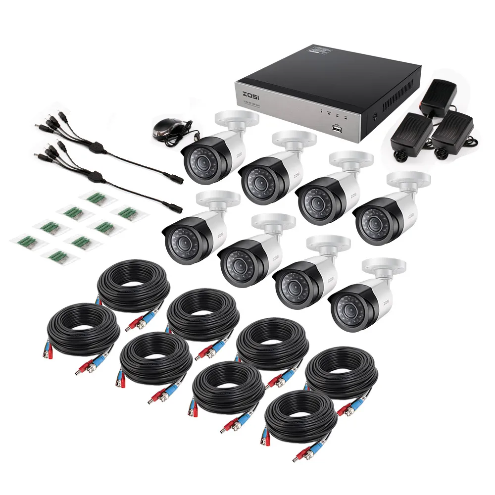 ZOSI 8CH Email Alert Surveillance Kits 1080P HD-TVI DVR 8PCS 2.0MP IR Night Vision Security Camera