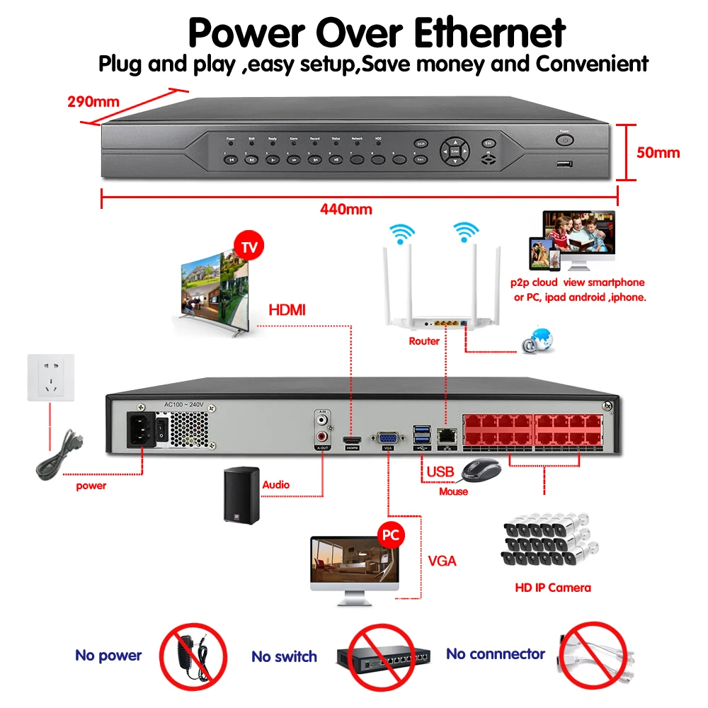 8CH 4K 16CH Network 5MP POE NVR Kit CCTV Security System 5.0MP IP Camera Outdoor IR Night Vision Su