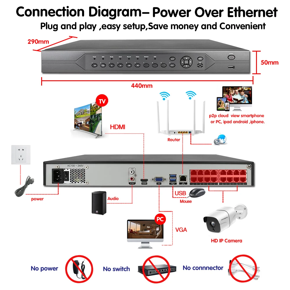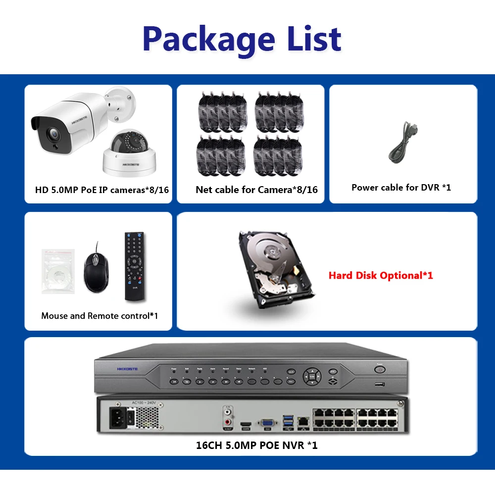 H.265 16CH 5MP POE NVR CCTV System 5MP Outdoor IP67 Weatherproof POE IP Cameras Video Security Set