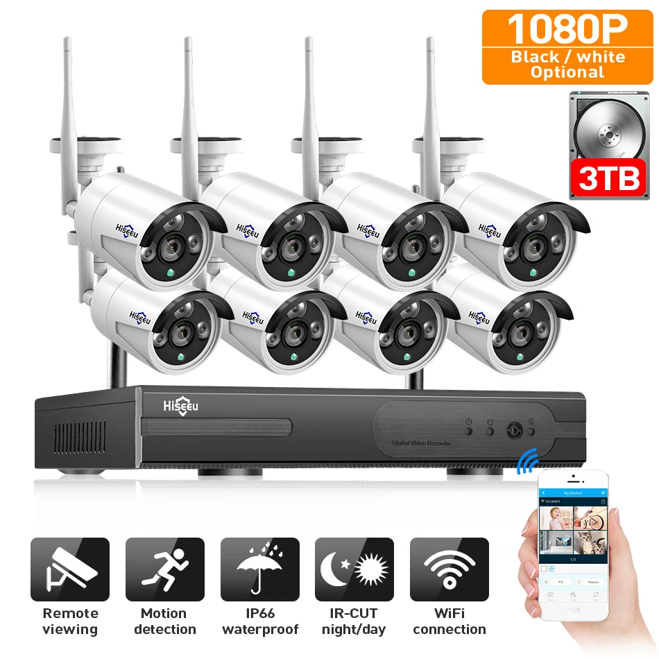 2MP CCTV System 1080P 8ch HD Wireless NVR kit 3TB HDD Outdoor IR Night IP Wifi Camera Security Syst