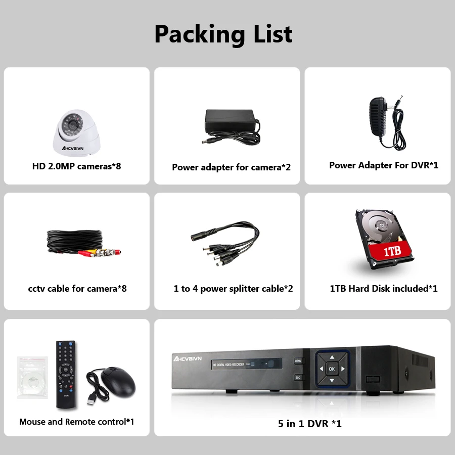 RESPONSE TO "HIGH QUALITY 8CH CCTV System 1080P HDMI AHD CCTV DVR 8PCS 2.0MP 3000TVL IR Dome Camera 1920*1080P DVR Camera Kit"