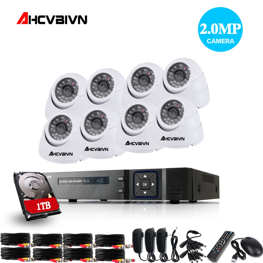 HIGH QUALITY 8CH CCTV System 1080P HDMI AHD CCTV DVR 8PCS 2.0MP 3000TVL IR Dome Camera 1920*1080P DVR Camera Kit