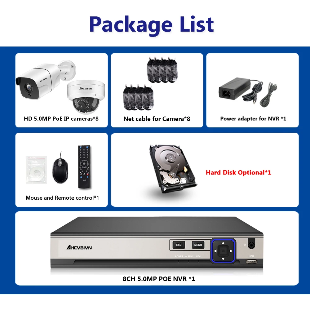HIGH QUALITY 8CH POE Network NVR CCTV System Kit Support 16*5MP IP Camera P2P IR IP66 In/Outdoor Weatherproof Vi