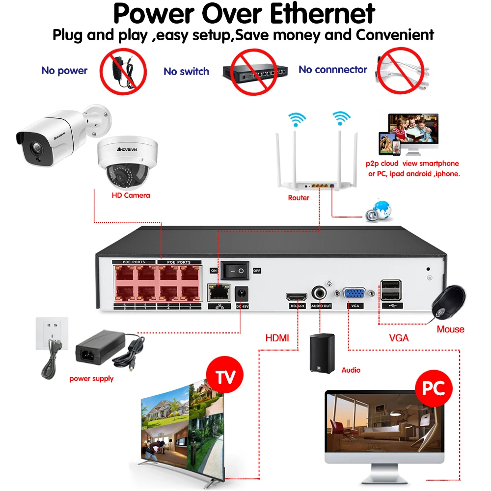 8CH POE Network NVR CCTV System Kit Support 16*5MP IP Camera P2P IR IP66 In/Outdoor Weatherproof Vi