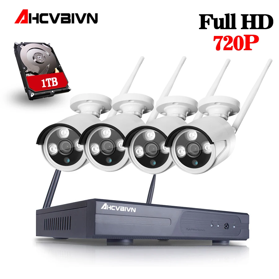 AHCVBIVN 4CH 720P HD Outdoor IR Night Vision Video Surveillance Security 4pcs IP Camera WIFI CCTV S