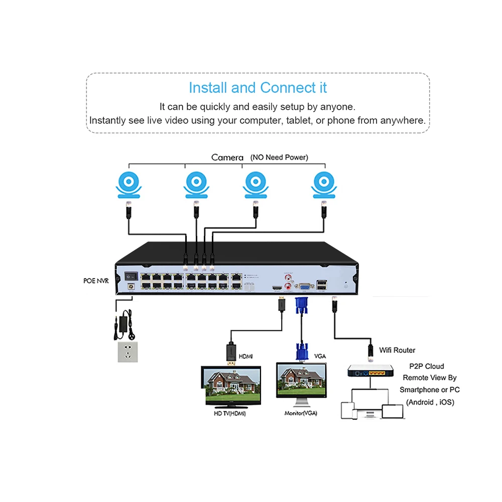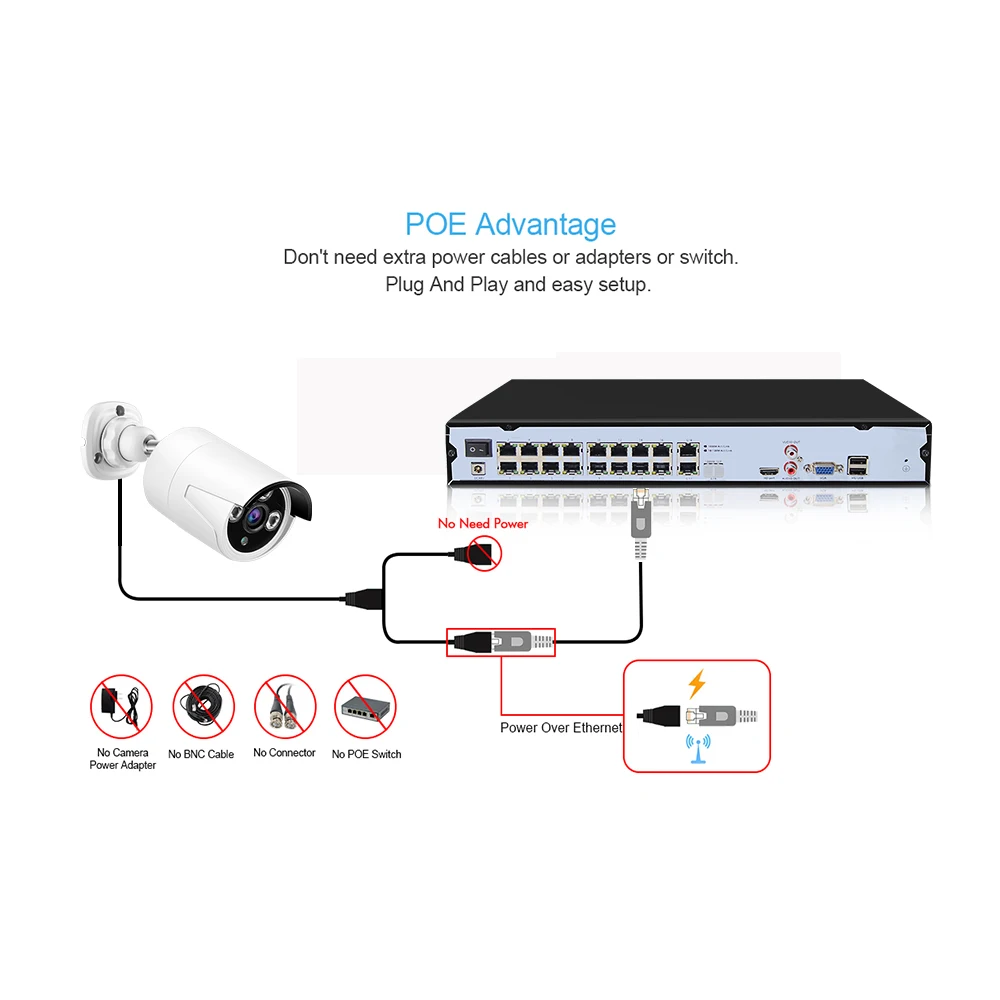 H.265 16CH 5MP 48V POE NVR Video Recorder P2P ONVIF 1080P Network Outdoor 3MP 2MP for IP Camera CCT
