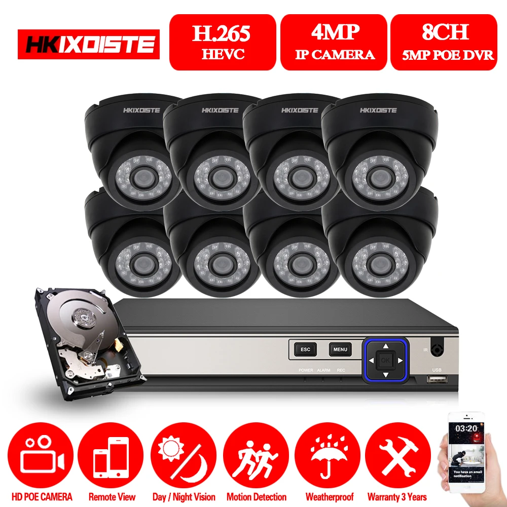 HOT Sale HKIXDISTE HD NVR 8CH 5.0MP POE CCTV Camera System Kits 4MP Black Dome IP Camera POE Home Security V
