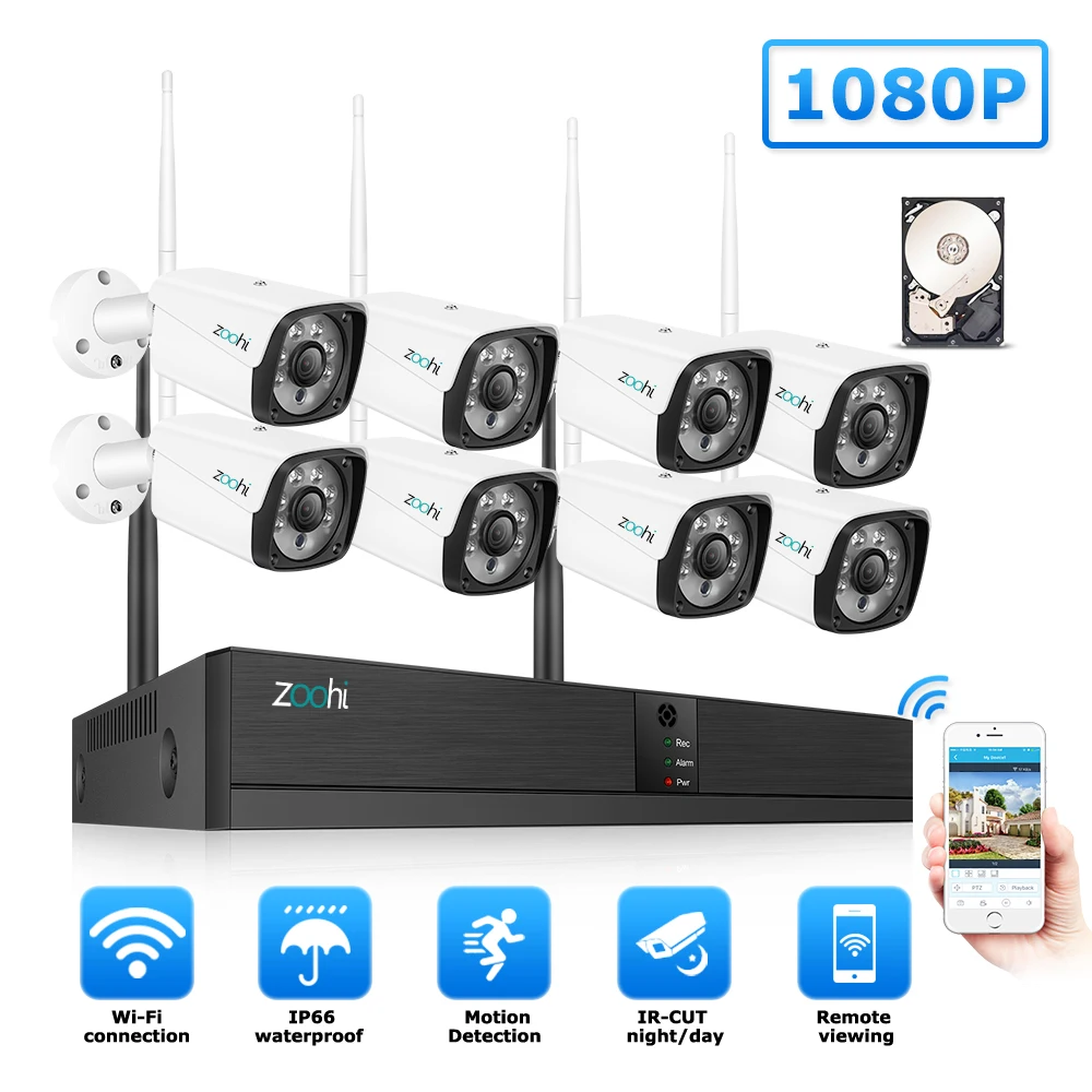 BEST SELLER Zoohi Surveillance Camera System 1080P 2MP CCTV Home Security Camera System 8CH Outdoor WIFI Camera