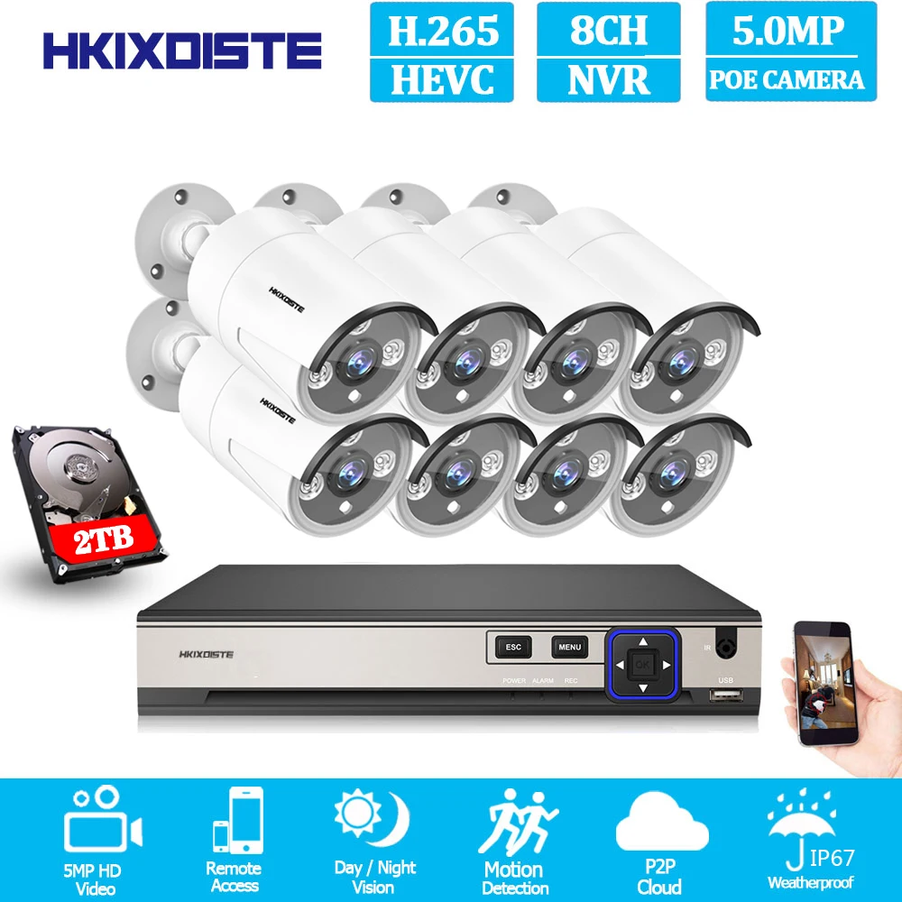 Network POE NVR 8CH Full HD 5MP Kit Support 16*IP Cam Security CCTV System Villa Street 3PCS IR In