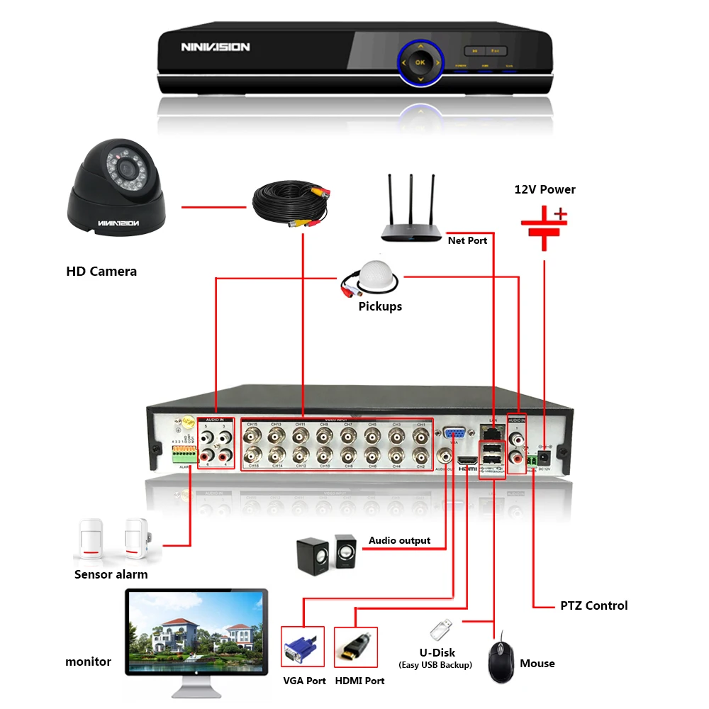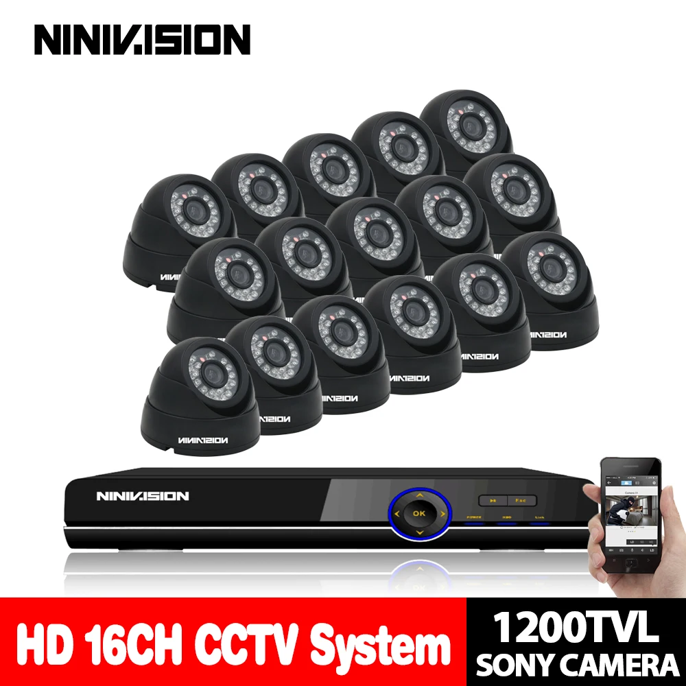 HIGH QUALITY NINIVISION Home CCTV system 16ch 1080P Dome Sony 1200tvl security camera system dvr kit 16 channel