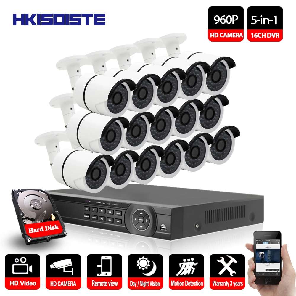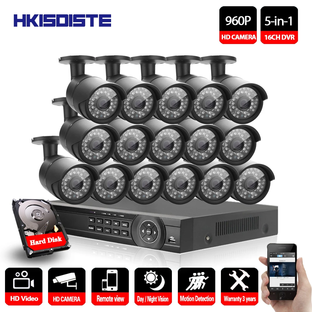16CH CCTV System HDMI 1080P output AHD CCTV DVR 16PCS 1.3MP IR Outdoor Security Nightvision 960P AH