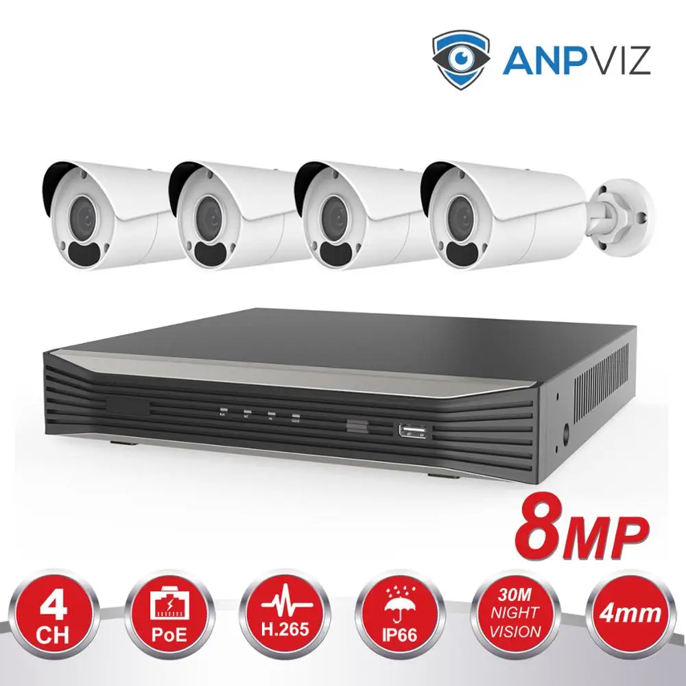 Anpviz 4CH 4K POE NVR KIT CCTV Security System 2/4PCS 8MP CCTV Bullet IP Camera P2P Video Surveilla