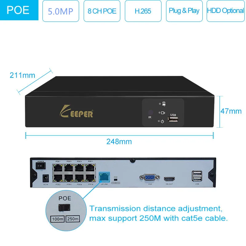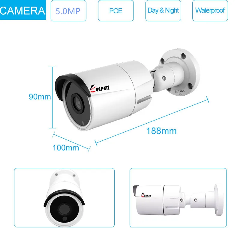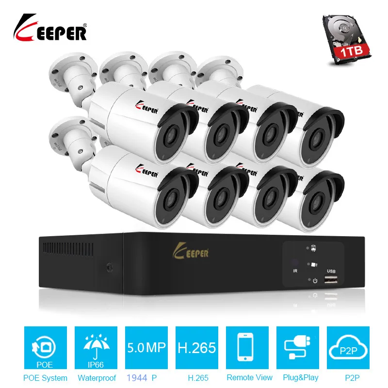 Keeper H.265 8CH 5MP POE NVR CCTV System 1944P Outdoor 2 Array IR Leds IP Camera P2P Onvif Video Su
