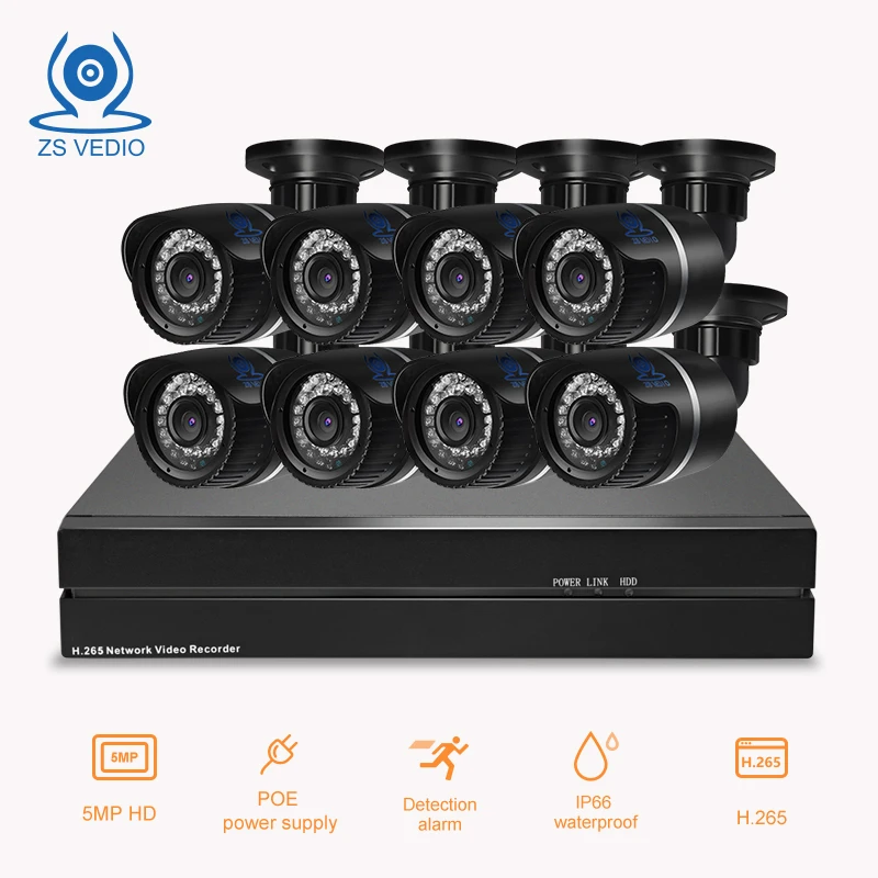 BEST QUALITY ZSVEDIO Surveillance System HD Lens CCTV Camera System Outdoor 5MP 8CH POE HDD Detection Video Surv