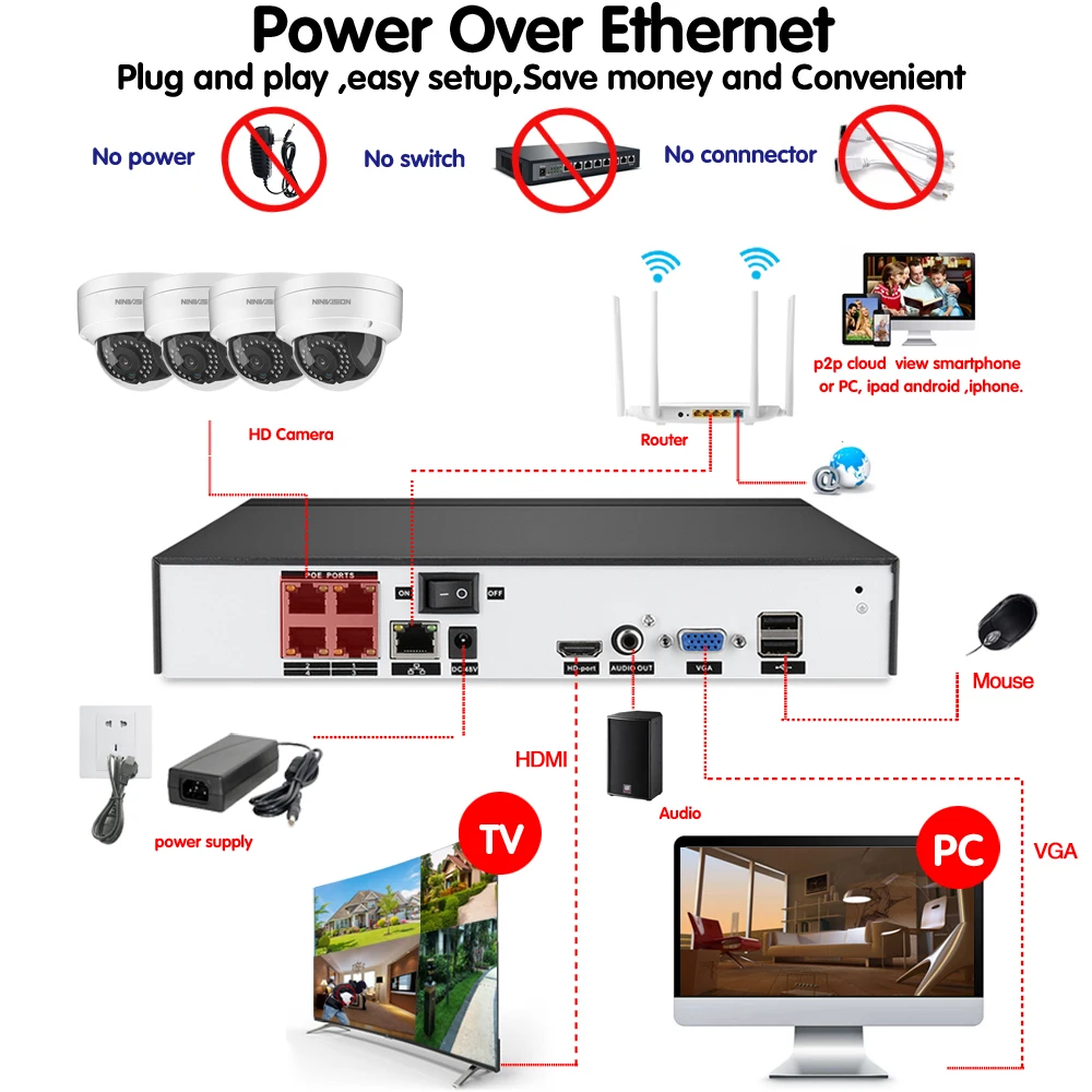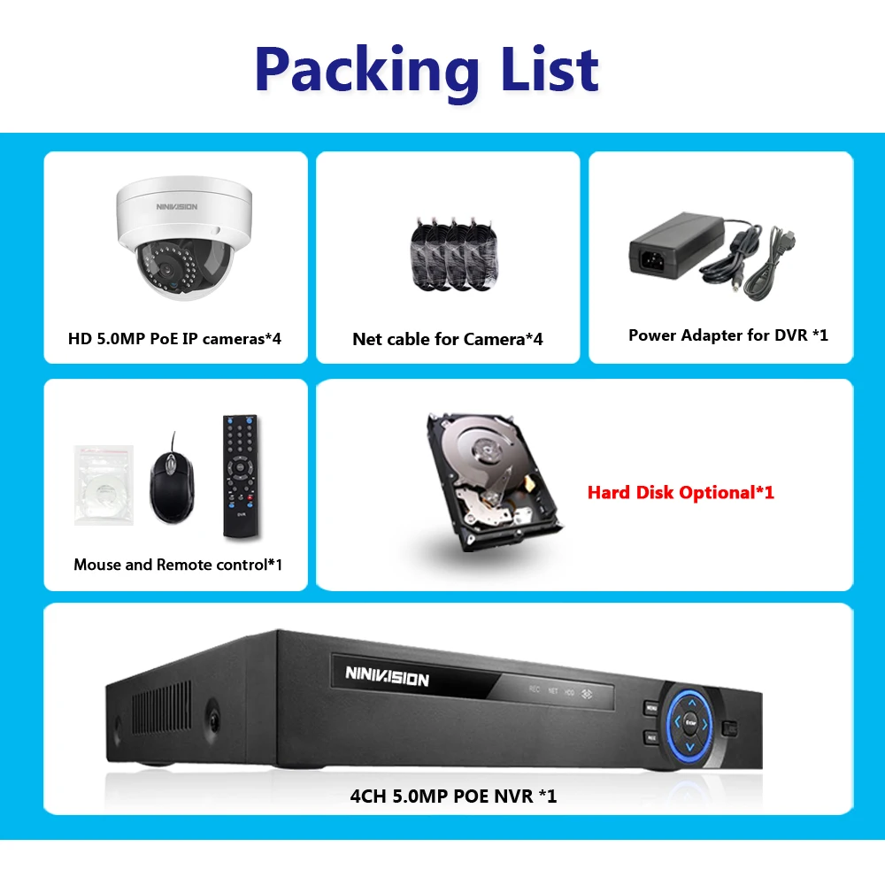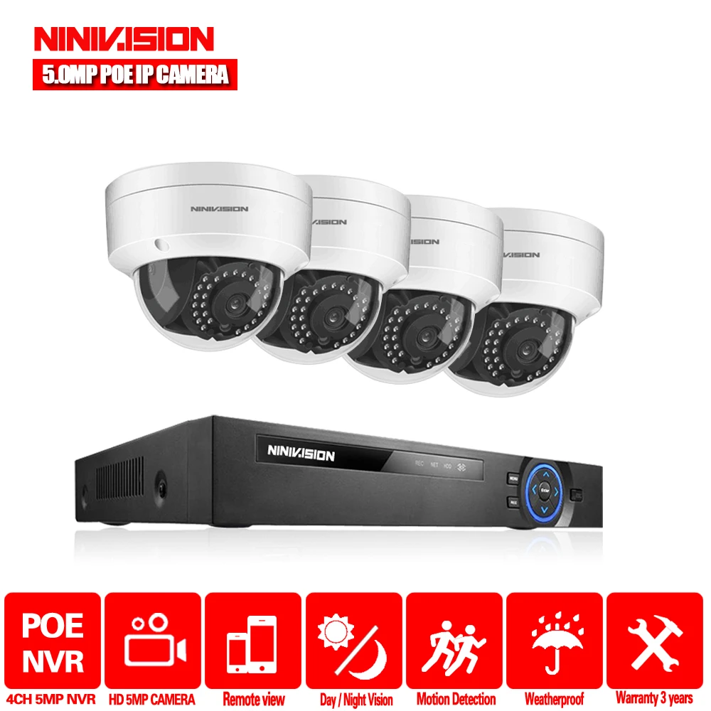 H.265 4CH 5MP 8CH 4.0MP POE NVR Kit CCTV Security System 5MP IR Dome Outdoor POE IP Camera P2P Vide