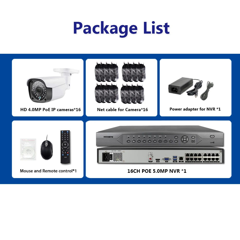 H.265 HD 16CH 5MP 8CH 4K POE NVR Security Camera System Kit 4MP Bullet POE IP Camera In/Outdoor cct