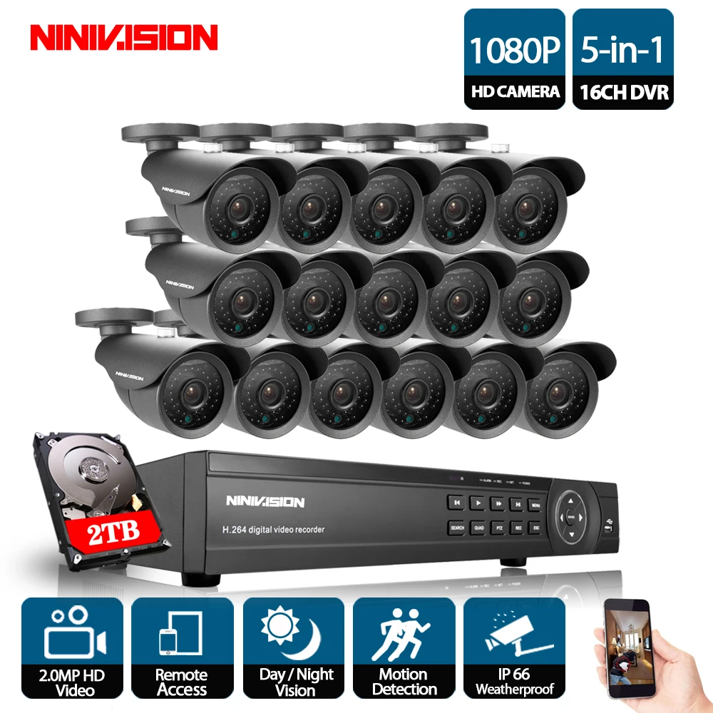 NINIVISION 16CH CCTV System 1080P DVR Kit AHD CCTV Video Recorder 1920*1080 2.0MP Surveillance Secu