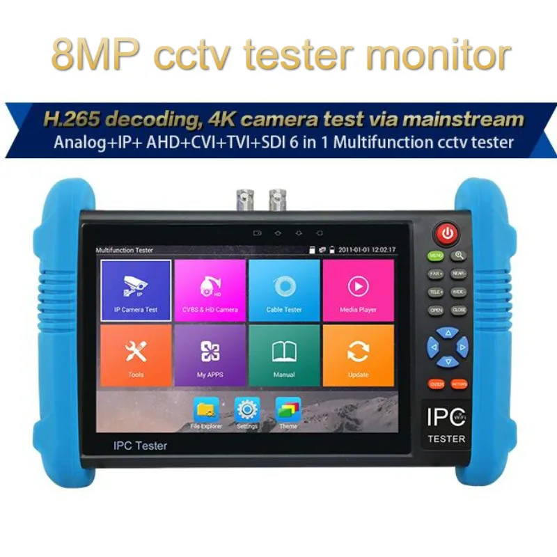 Wanglu 7" H.265 4K 6 In 1 CCTV Tester Monitor IP Analog AHD TVI CVI SDI Camera 8MP ONVIF Multimeter