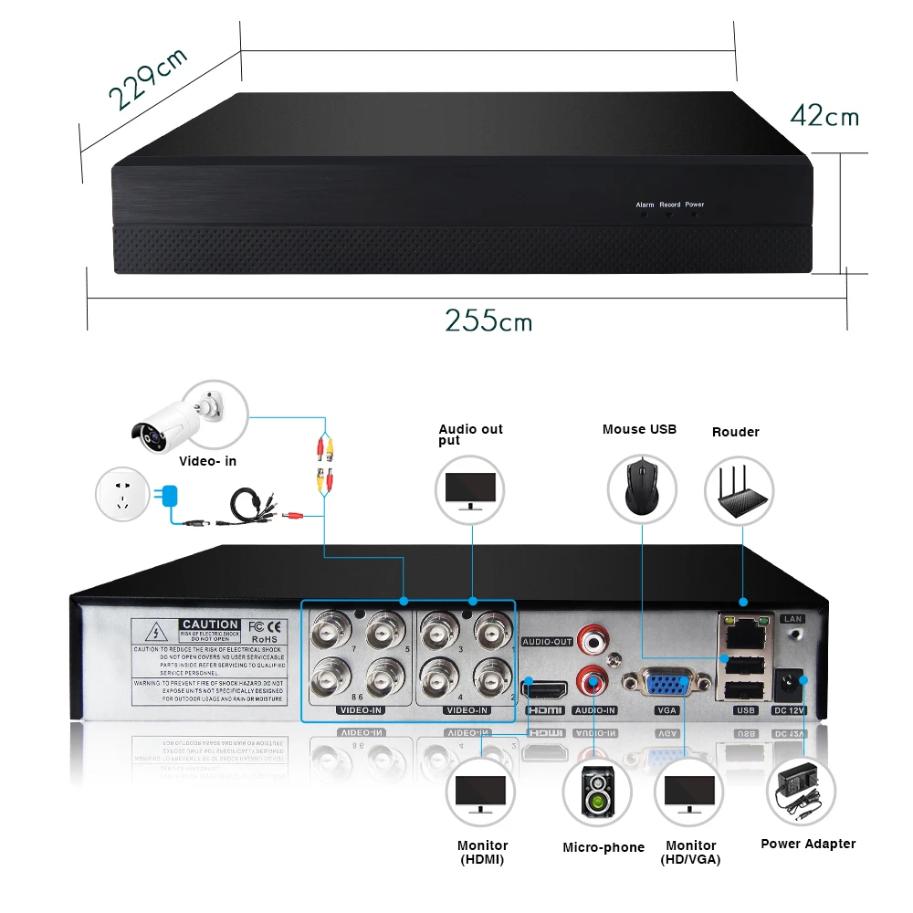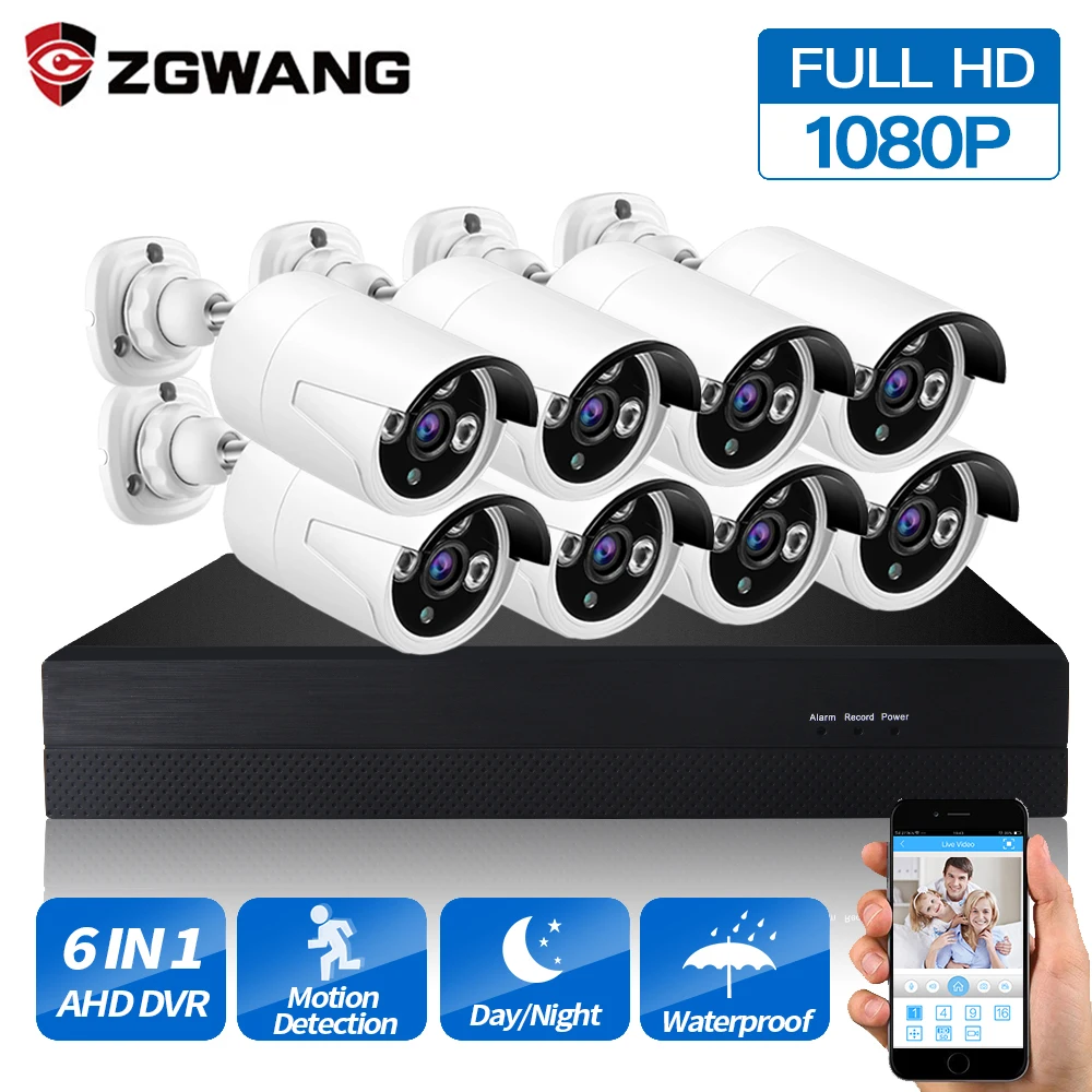 ZGWANG Waterproof Outdoor AHD DVR CCTV System 8PCS 2.0MP 1080P Home Security Camera P2P Video Surve